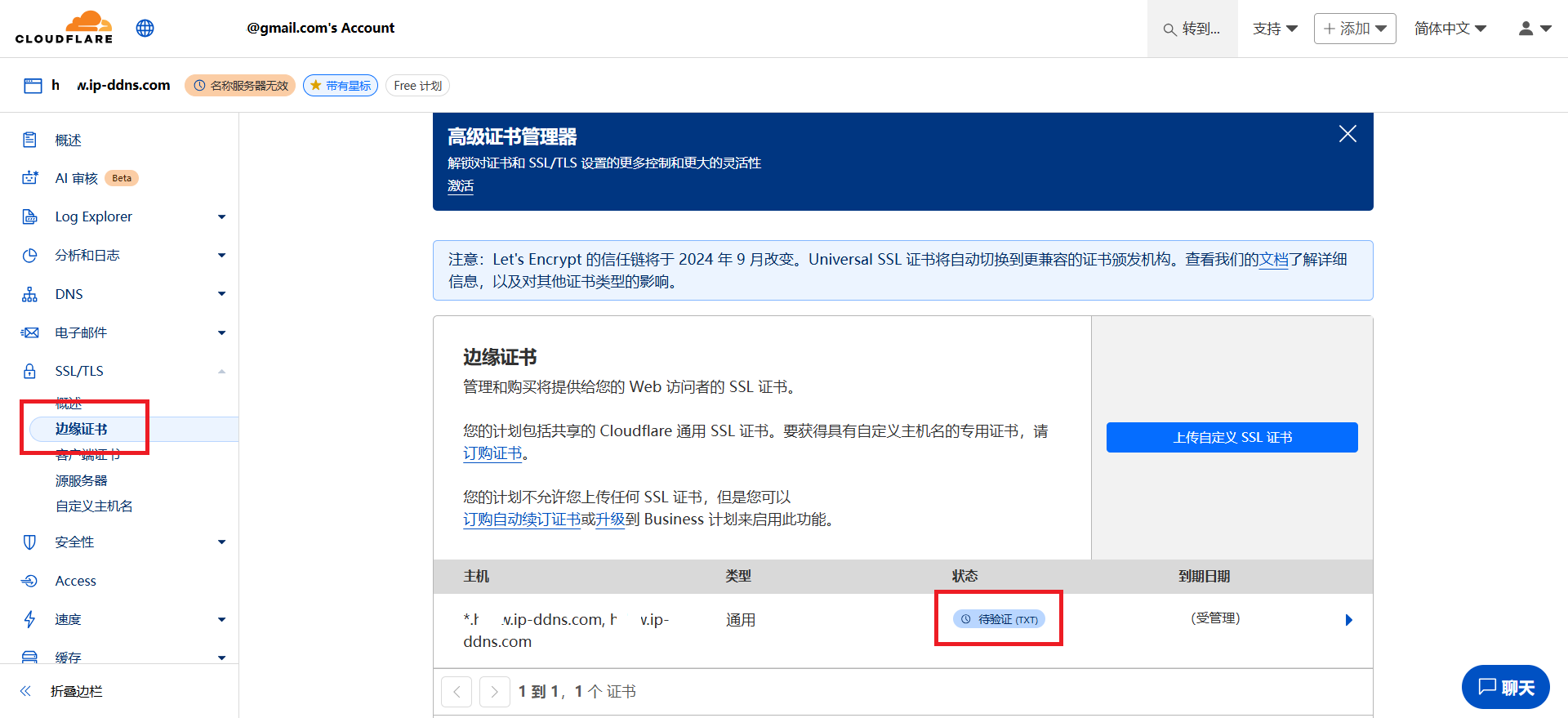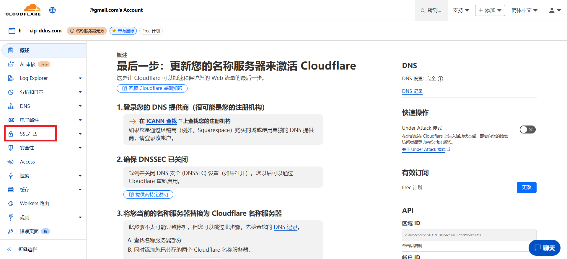 - 返回 Cloudflare 点击【SSL/TLS】选项。