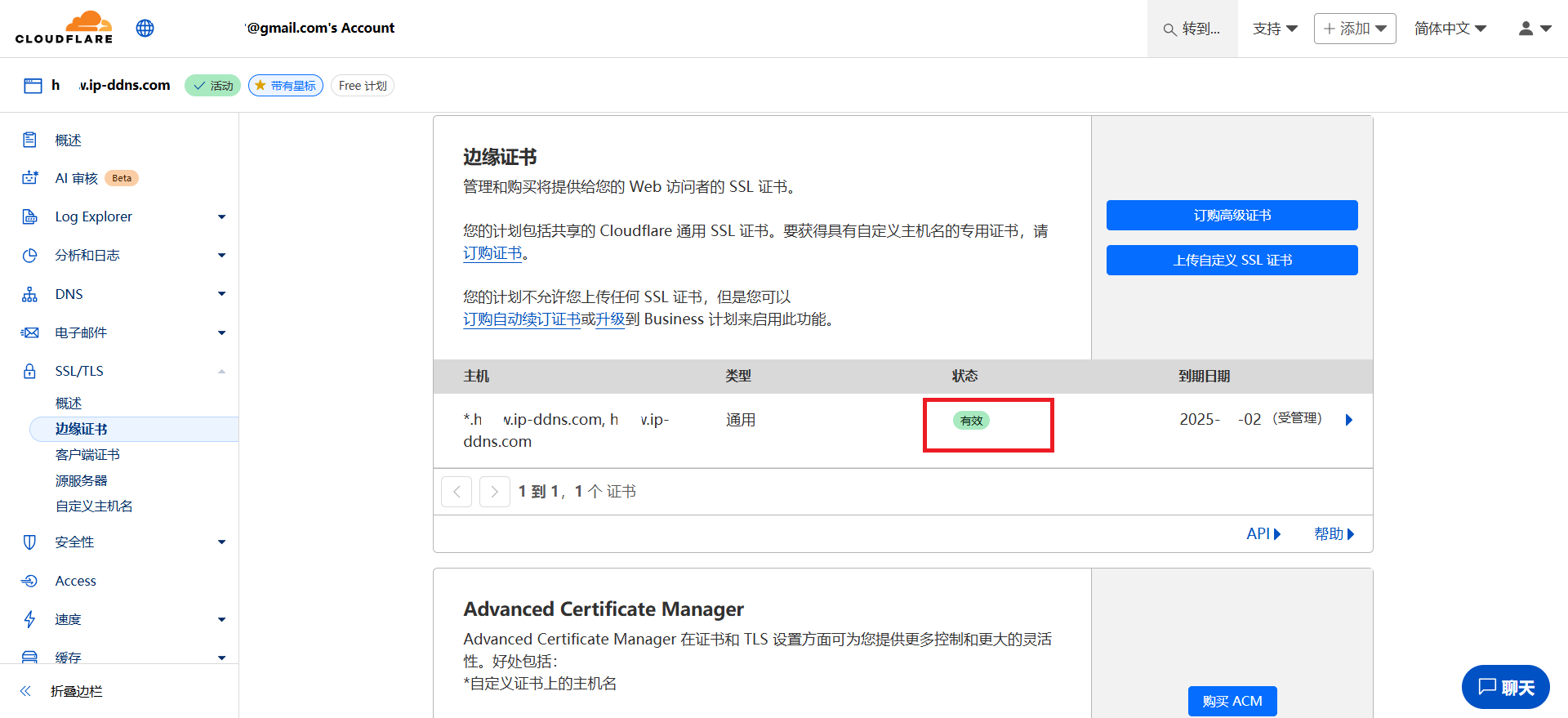 - 大约10分钟左右,如图显示【有效】即代表域名托管成功。