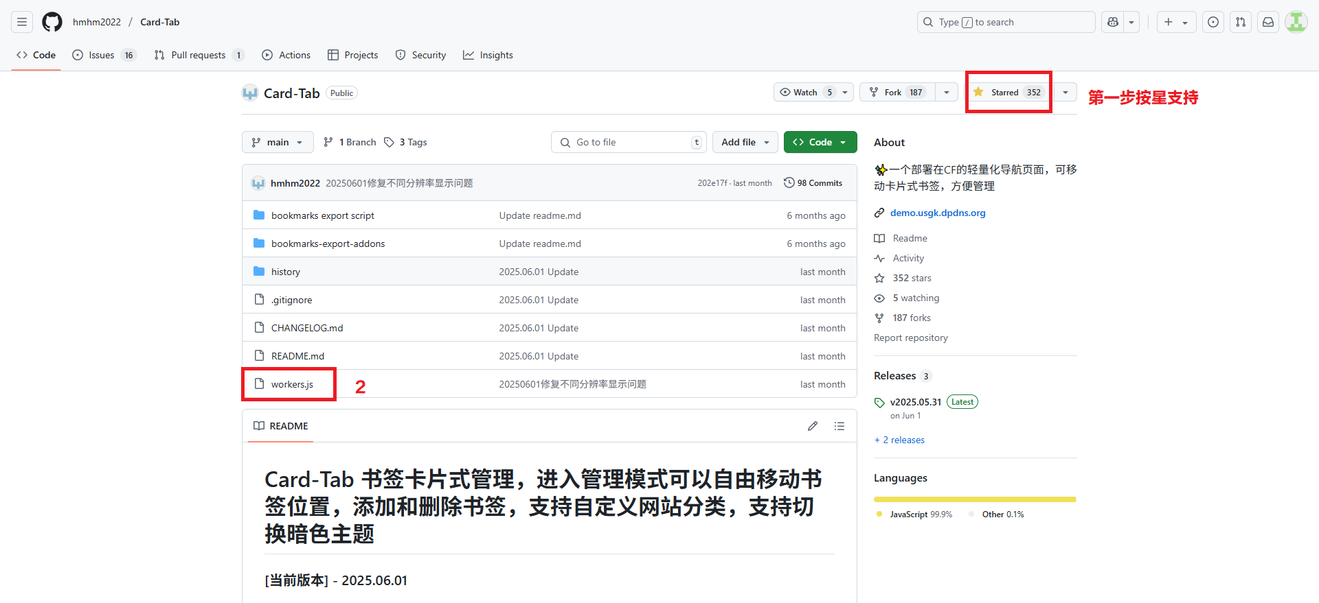 - 打开项目地址:https://github.com/hmhm2022/Card-Tab