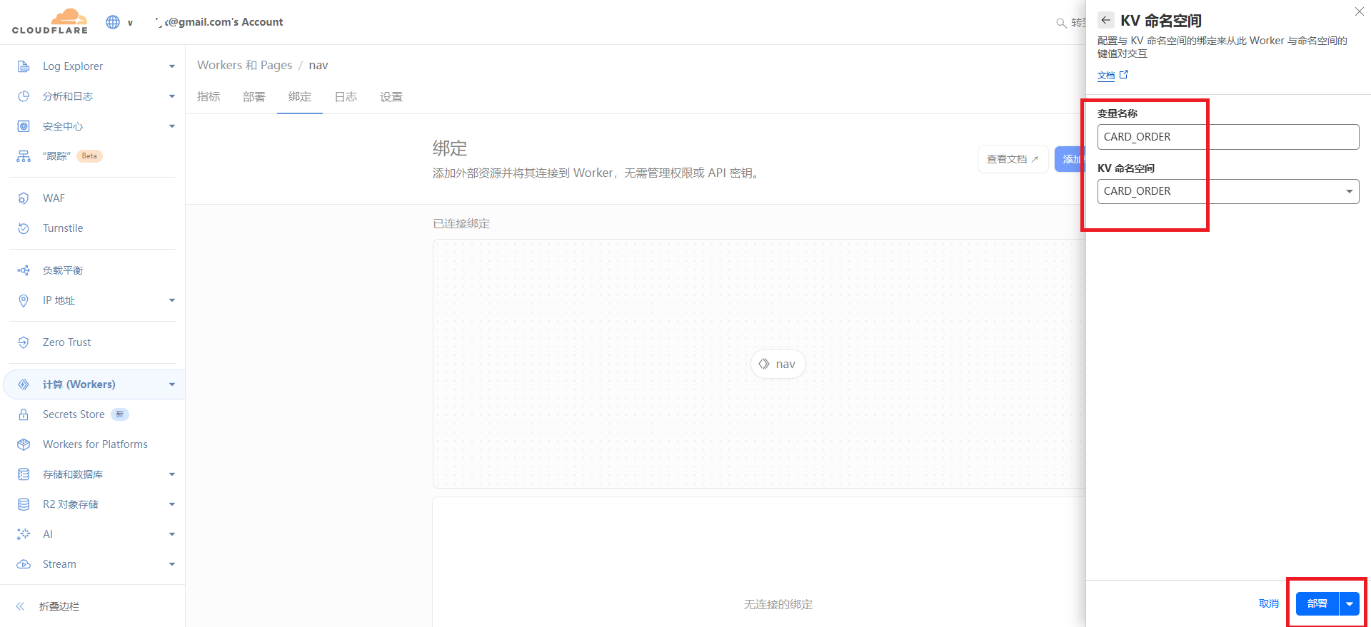 - 选择【绑定】→【添加绑定】→【KV 命名空间】。