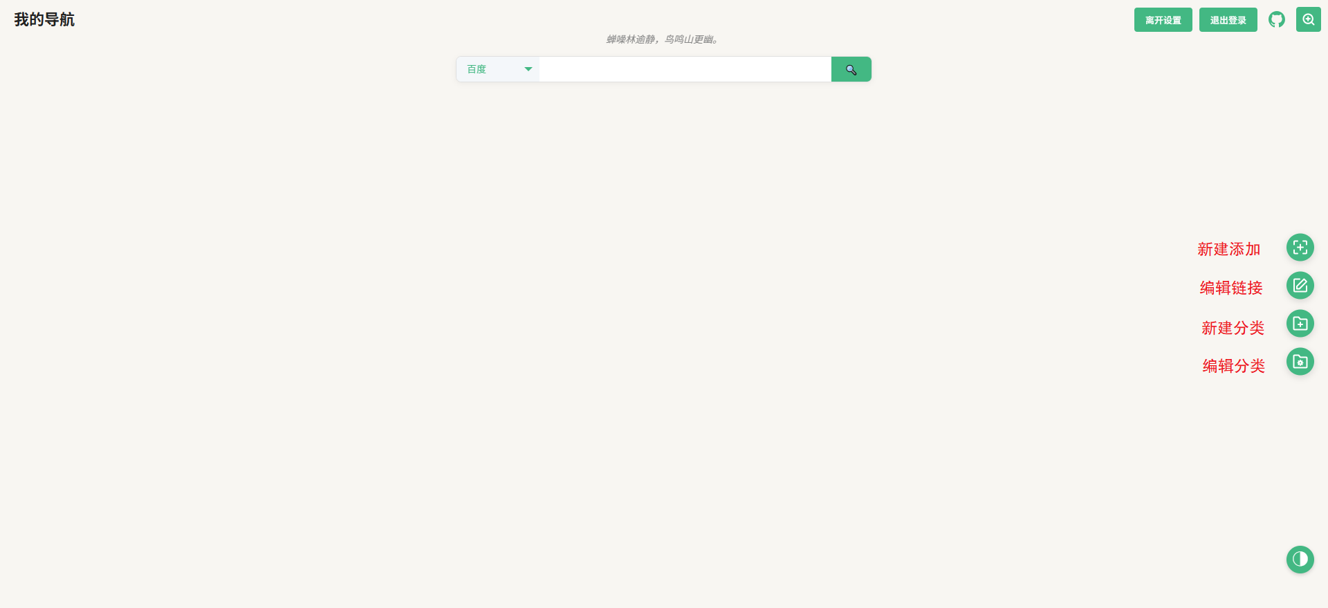 利用右侧四个按钮:【添加链接】、【编辑链接】、【添加分类】、【编辑分类】,可以进行个性化编辑,建立属于自己的个人导航页。