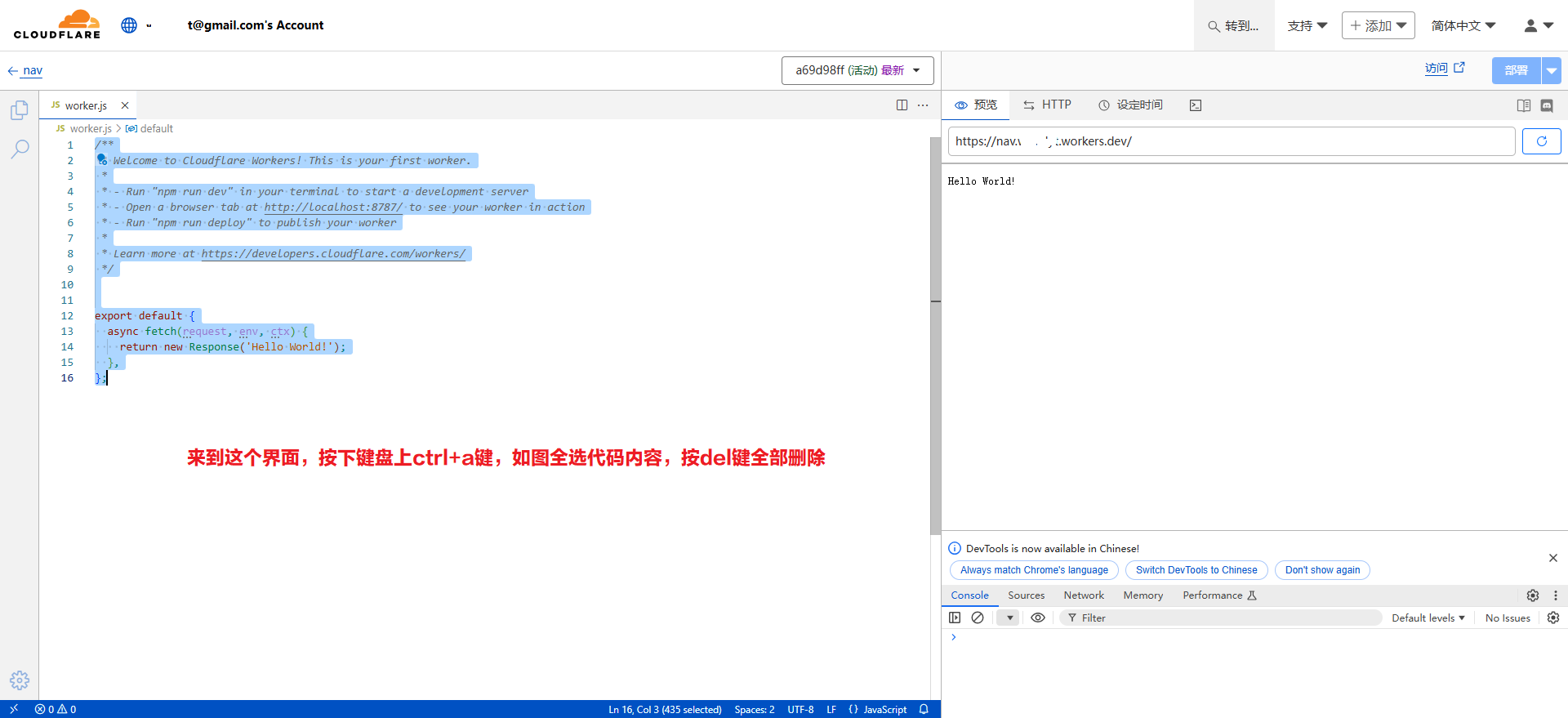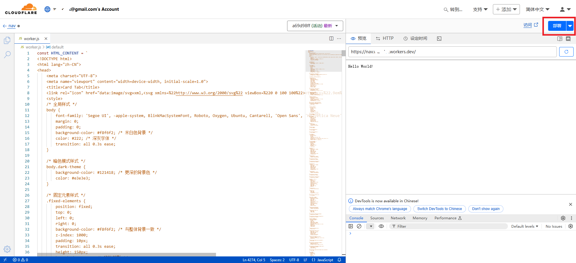 - 回到代码编辑页,按键盘 ctrl+v ,将全部代码粘贴进来,按【部署】。