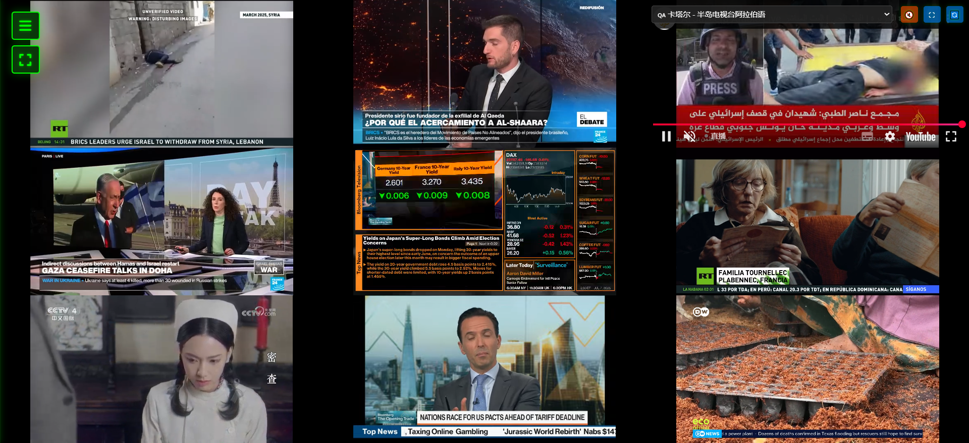 全球直播电视 By admin | 2025-07-14 全球直播电视绝对是最强的电视直播网站,实质内容就是标题的字面意思,非常的6无需注册,打开 直播电视墙 的网站,就可以观看全球各地的电视直播。界面很简洁,使用 Google 翻译看一眼就能明白如何使用。