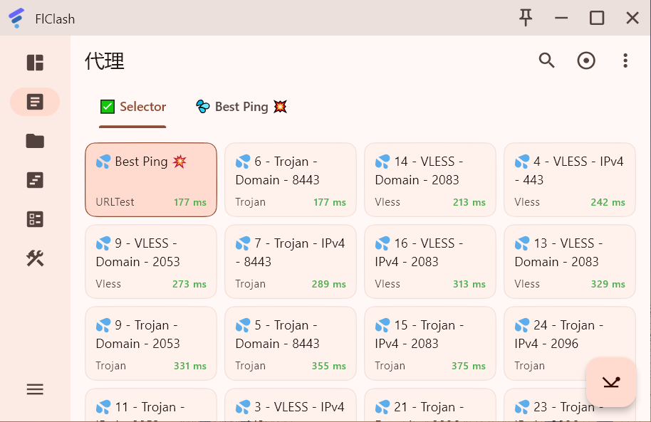 FlClash 采用了 ClashMate 内核,对主流协议支持较好,并且支持 Windows、Android、macOS 和 Linux 等主流平台。直观易懂、布局合理,功能强大、免费开源,也许算是最容易上手的代理工具。
