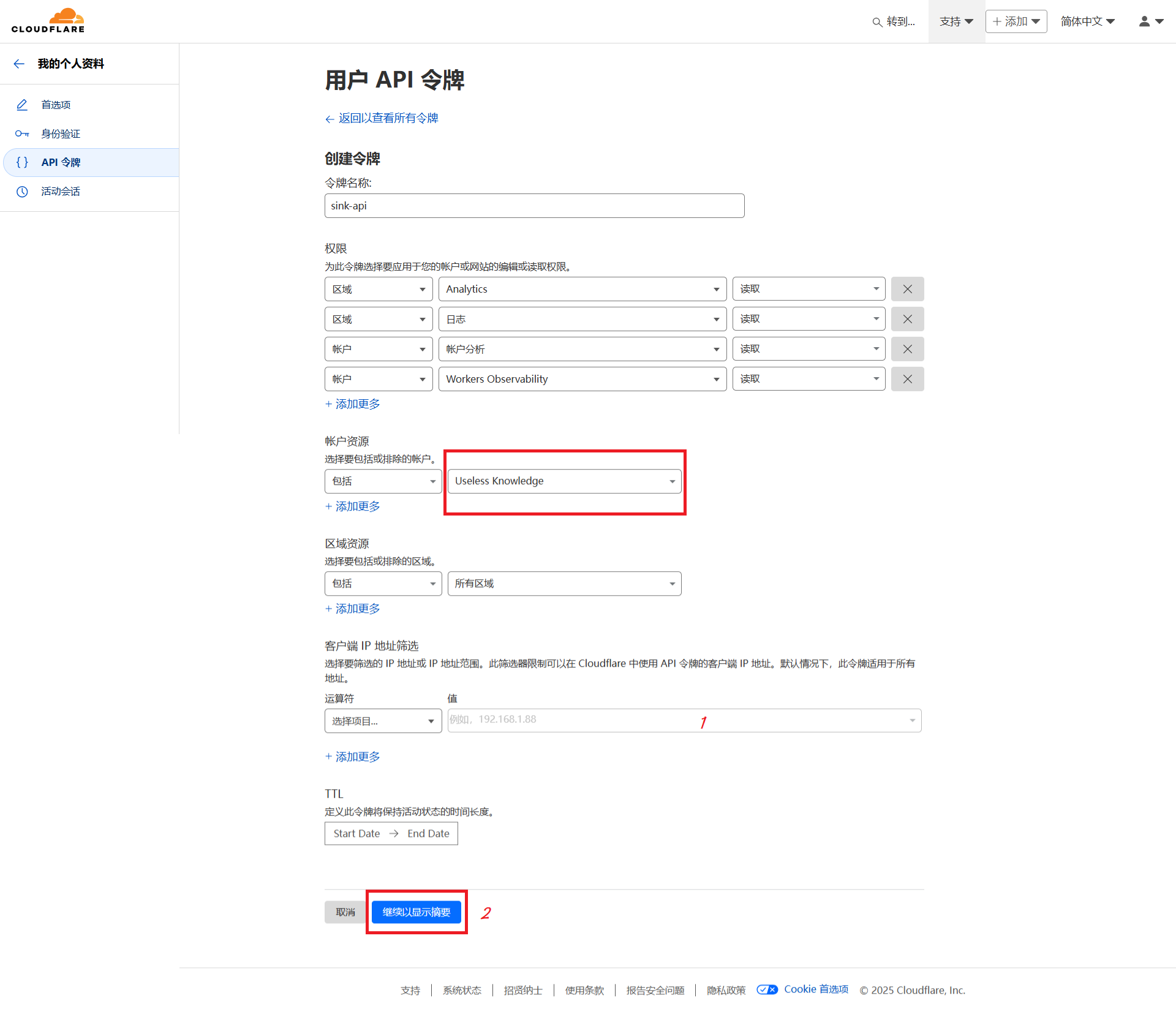 - 【帐户资源】→【当前帐号】→【继续以显示摘要】