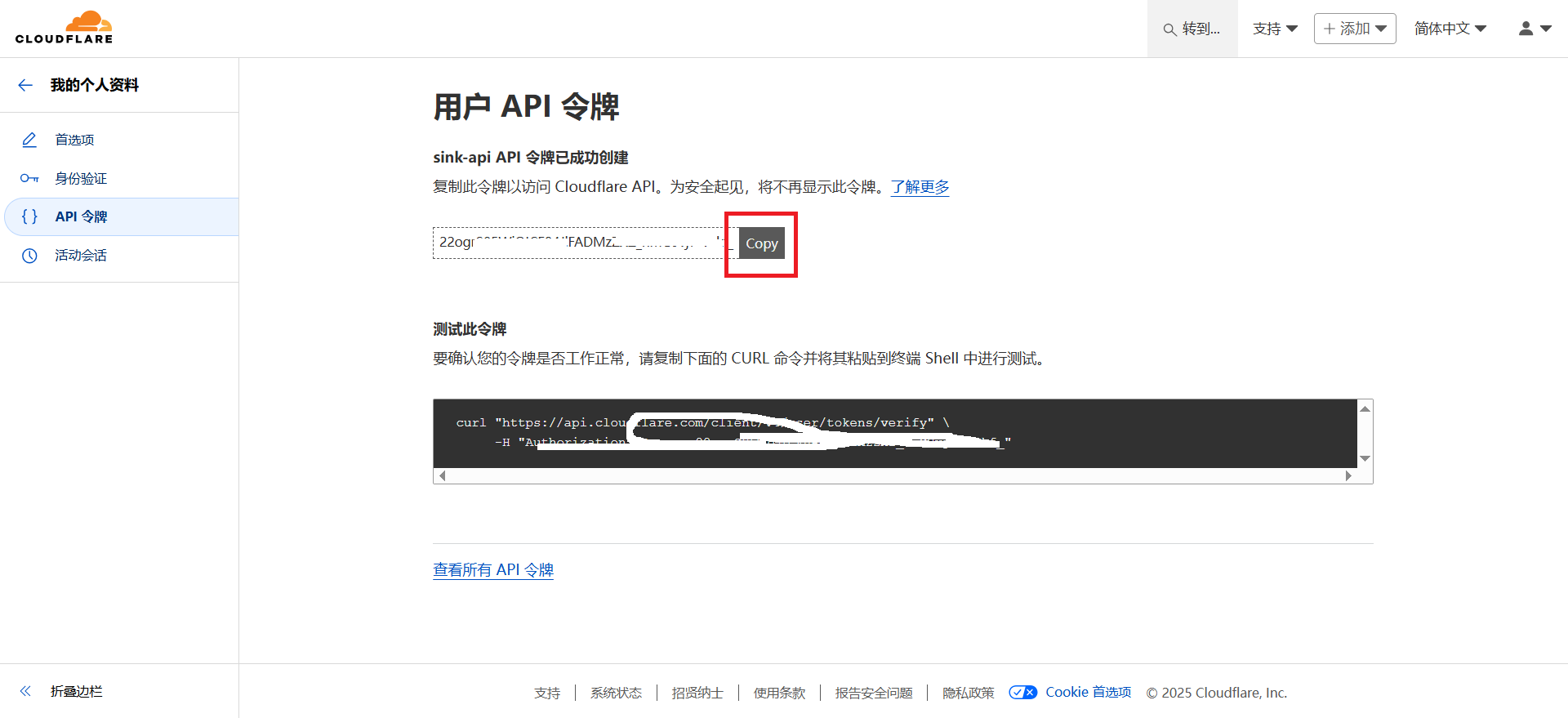 令牌只会显示一次,一定要保存好
