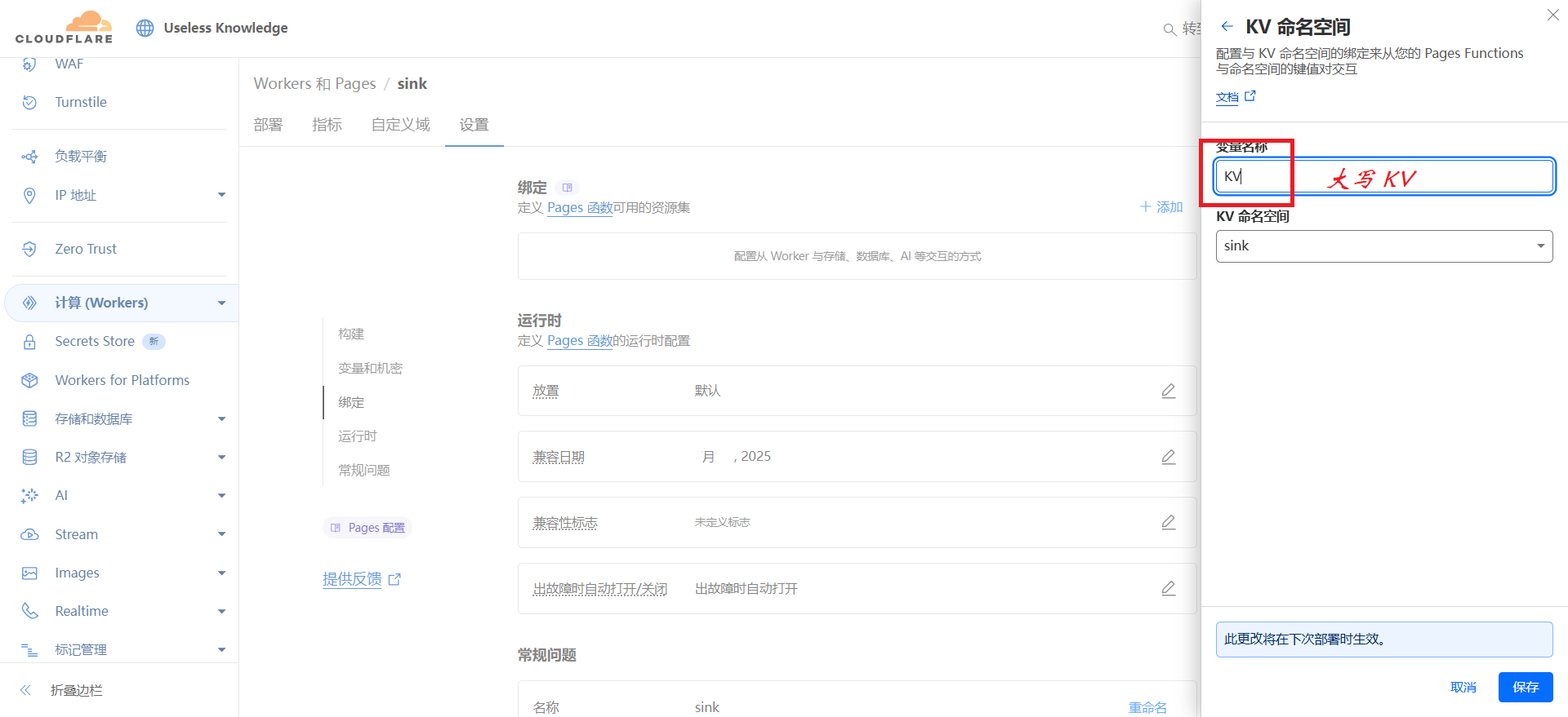 - 创建 KV 空间并绑定:【存储和数据库】→【KV】→【Create Instance】