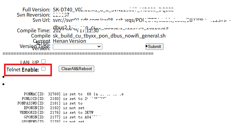 打开隐藏配置界面【http://192.168.1.1/hidden_version_switch.html】,勾选【Telnet Enable】,选中后会一闪而过,没有关系。