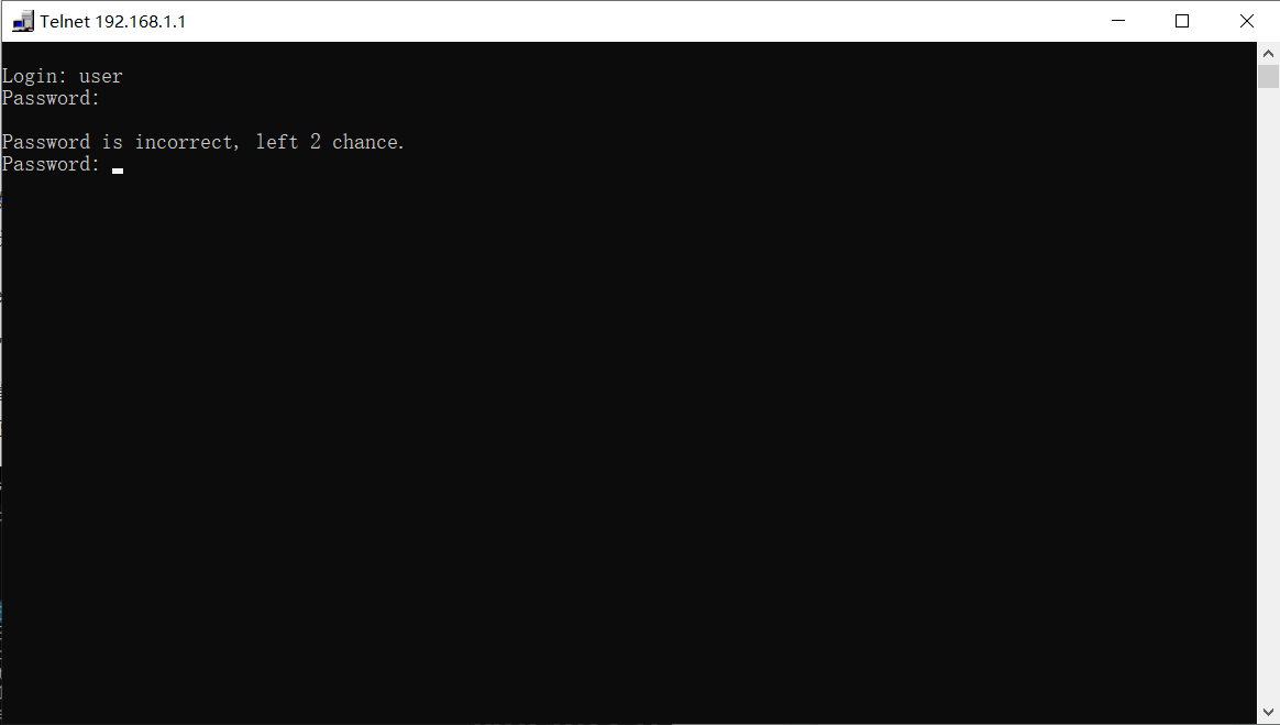 【开始】→【右键】→【运行】→执行【telnet 192.168.1.1】命令,输入光猫背面自带的用户名即可,密码随意,窗口暂时不要关闭,完成操作后如下图。