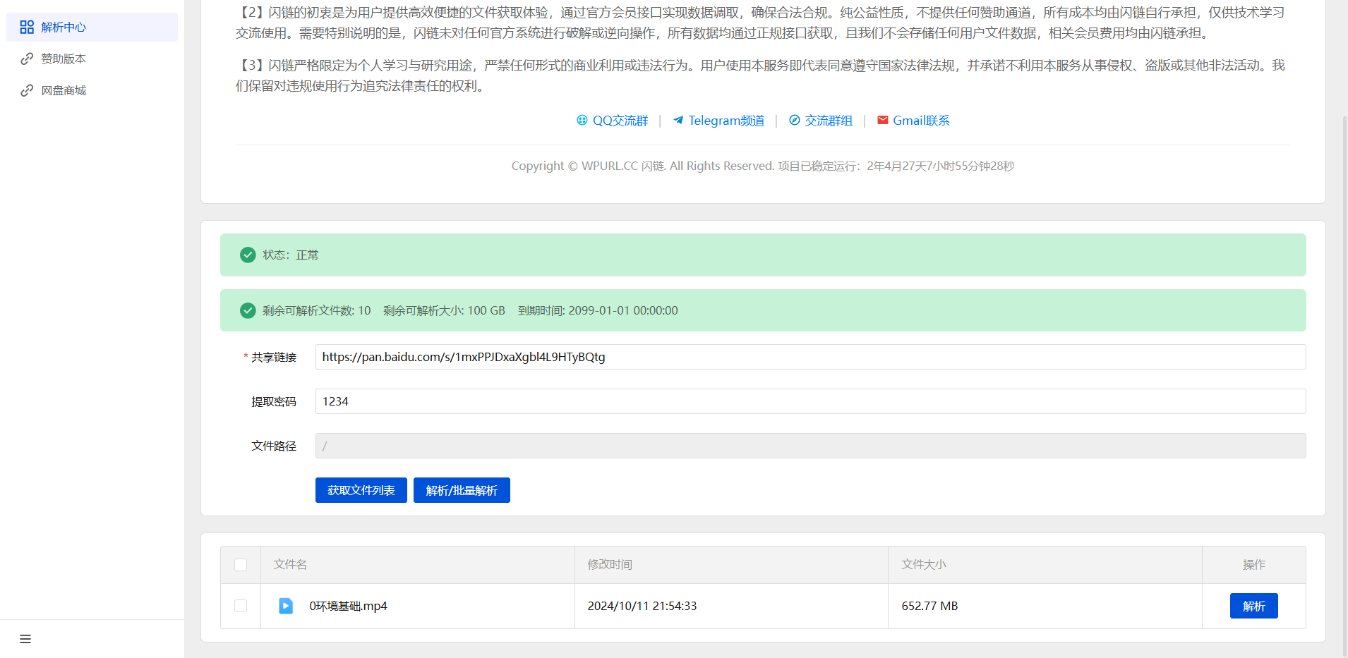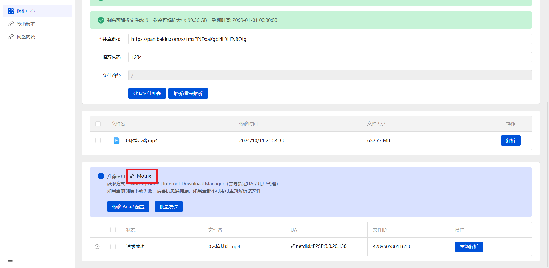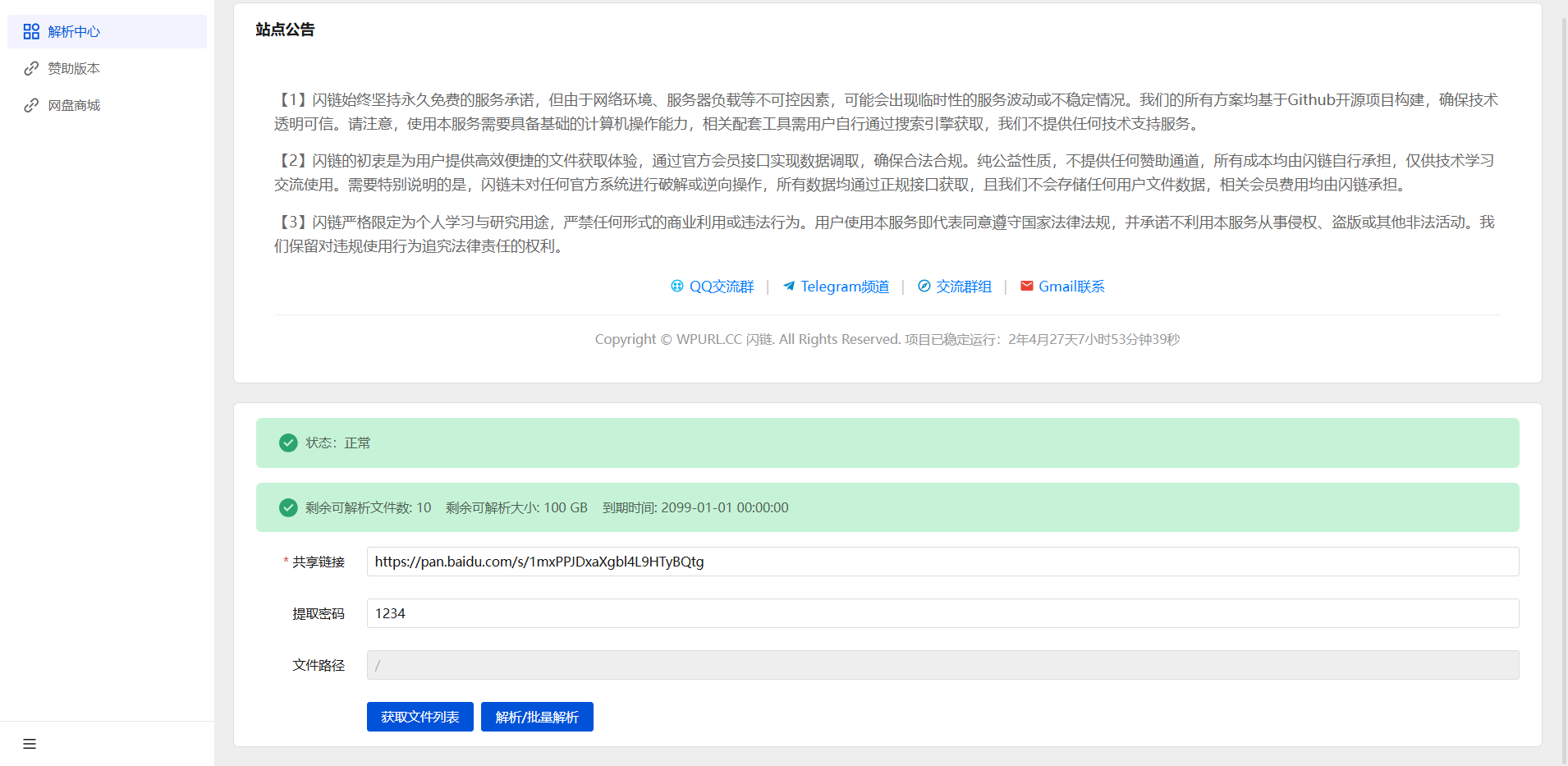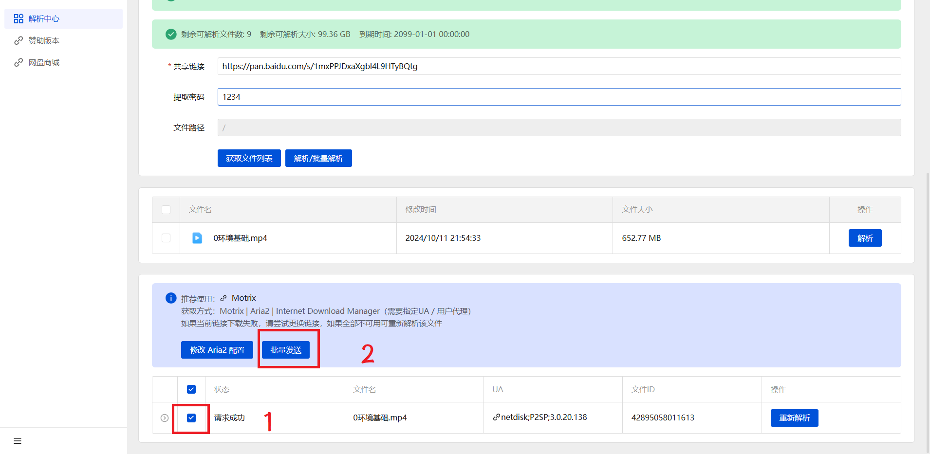 共享链接和提取密码,分别复制粘贴到对应位置 →【获取文件列表】。