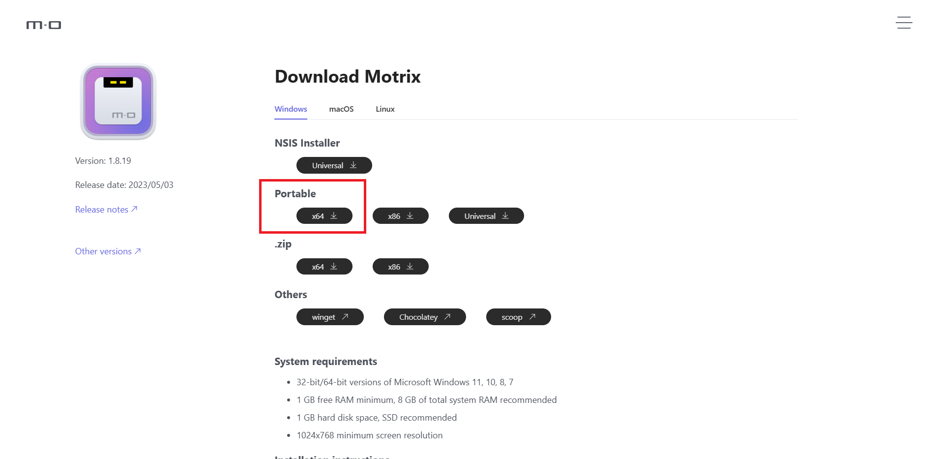 - 选择红框中的下载地址下载 Motrix ,也可以选择下面的