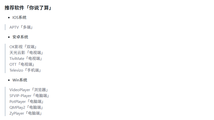 不论是 TV 或手机,IOS 或 Windows 都有可以使用 IPTV 订阅链接的程序,推荐使用下列软件之一。