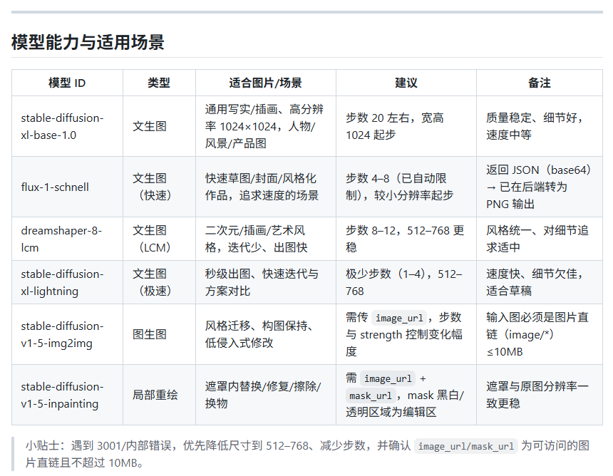 模型清单:编辑 src/worker.js 中 AVAILABLE_MODELS 可增删/改描述、是否需要图片/遮罩。