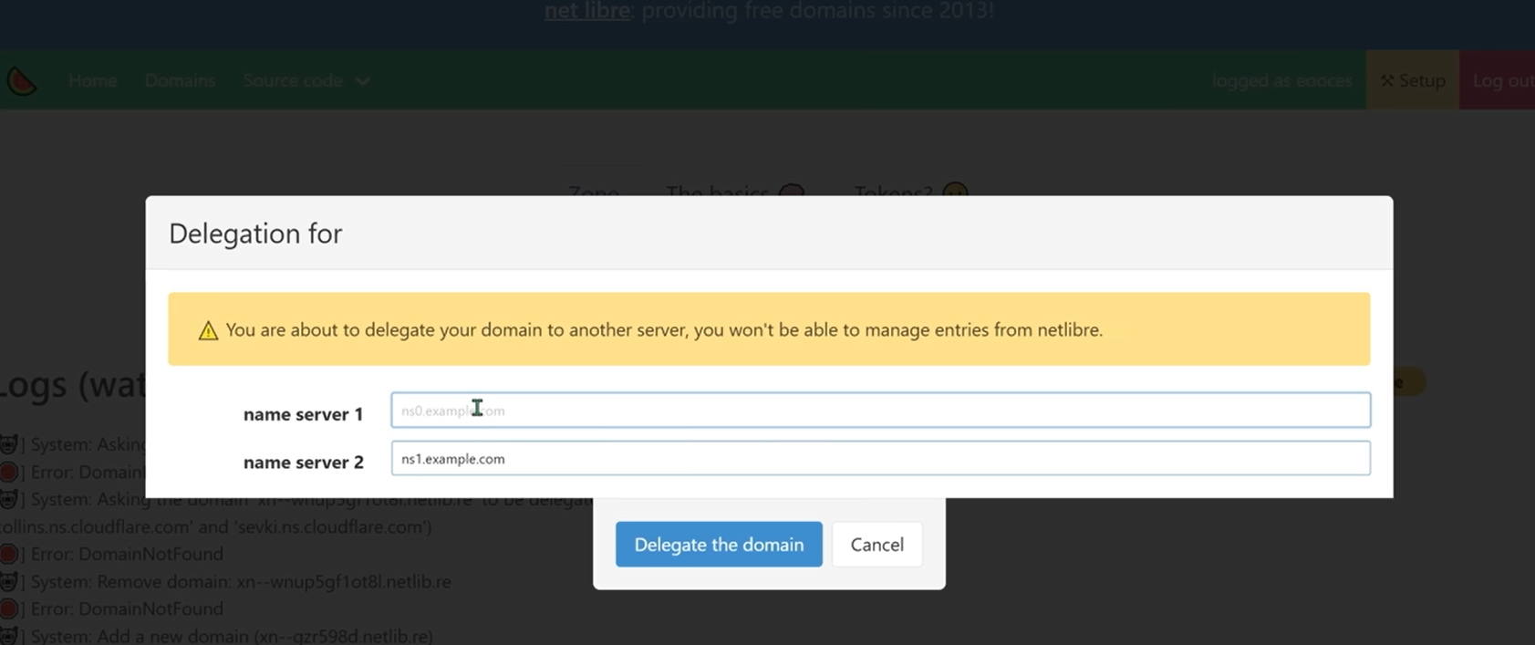 3、大概率托管不成功,但是可以得到 netlib.re 域名的 DNS 服务器地址。