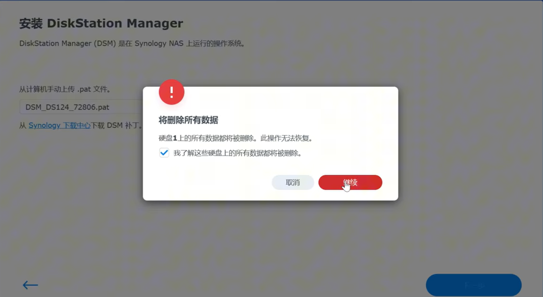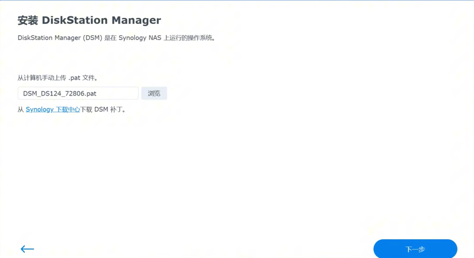 - 登陆 OEC 后台,选择 DSM_DS124_72806.pat 文件